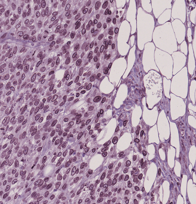 To metastasise, cancer cells need to break away from the primary tumour, travel to another part of the body and start growing there. However, the dense surroundings of a tumour make this physically difficult for cancer cells.