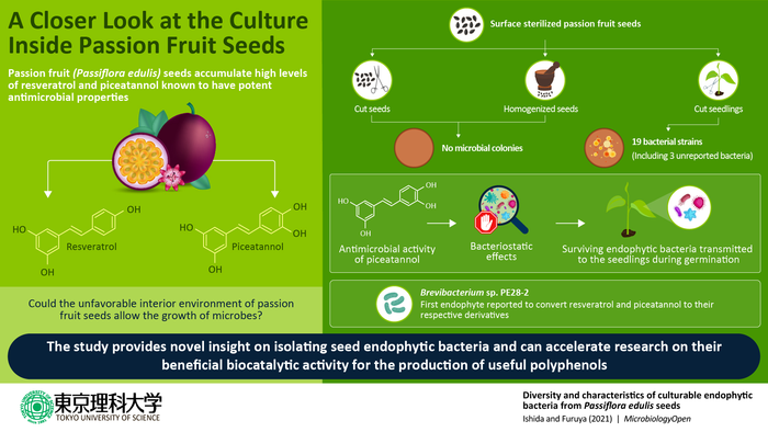 Now, for the first time ever, a research group consisting of Dr. Toshiki Furuya, Associate Professor at the Department of Applied Biological Science, Tokyo University of Science, Japan, has succeeded in isolating bacteria from the seeds of passion fruit (Passiflora edulis). Their research, which also unearths the surviving mechanisms of these bacteria inside the seeds, has been published in the journal MicrobiologyOpen.