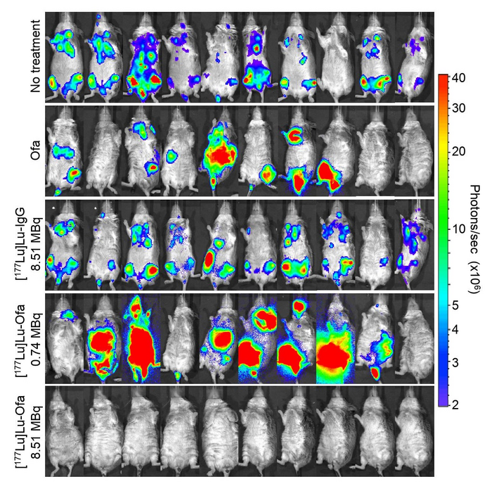 In the study researchers labeled ofatumumab, a recently developed anti-CD20 fully human antibody, with 177Lu, a widely used therapeutic radioisotope that can kill cancer cells. They then determined the in vitro characteristics of [177Lu]Lu-ofatumumab, estimated human dosimetry, and evaluated its therapeutic effectiveness for non-Hodgkin lymphoma in a mouse model.