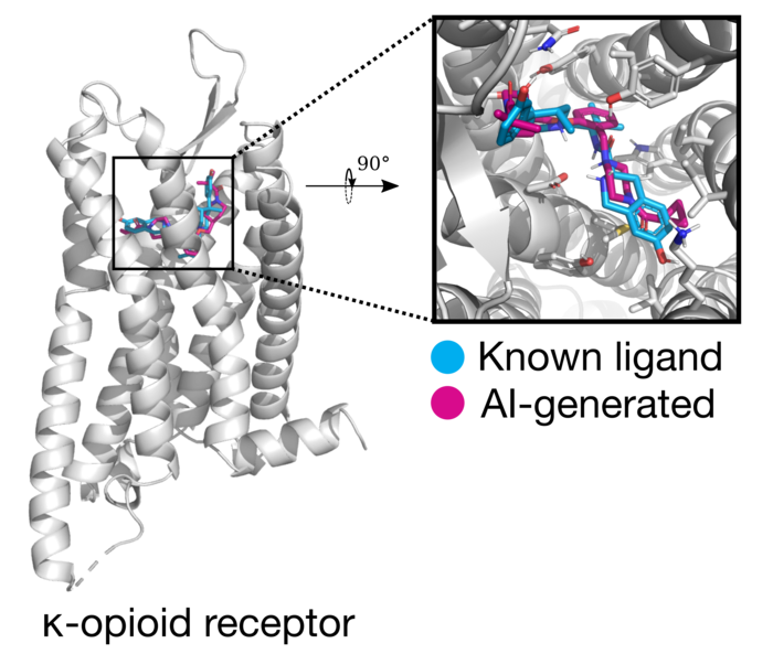 Using information about the kappa-opioid receptor and known drugs, they trained a computer model to generate compounds that might block the receptor with a reinforcement learning algorithm that rewarded properties that are favorable for drug treatments.