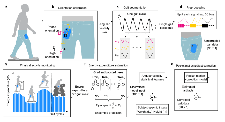 Published in Communications Engineering, the study was led by Ph.D. student Haedo Cho, who re-developed a machine learning model that Slade’s group had previously shown could accurately extract energy expenditure values from leg motion. The model uses continuous motion data captured by the smartphone’s gyroscope and accelerometer and interprets those swings and movements as values for expended energy.