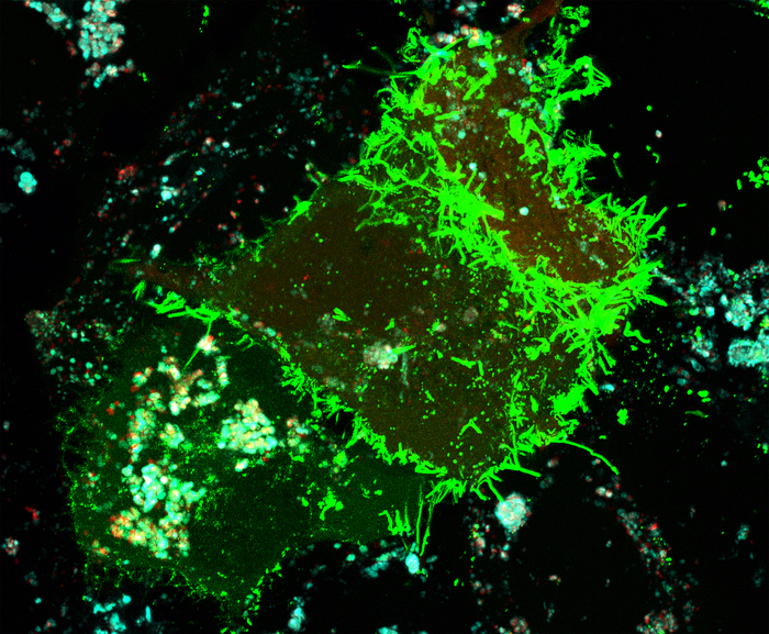 To follow the activity of VP40 in real time, the team used powerful confocal microscopy, labeling each actor of interest with a different fluorescent tag. They observed that Bag3 was involved in sequestering VP40 in vesicles in the cell that would go on to undergo autophagy. Stuck in these vesicles and destined for the cellular “recycling center,” VP40 was unable to move to the cell membrane and bud.